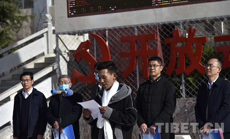 圖為西藏職業(yè)技術(shù)學(xué)院2020屆首批區(qū)外就業(yè)畢業(yè)生出征儀式上,邊巴次仁發(fā)言(資料圖) 攝影:王媛媛