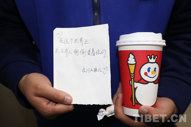 抱著這個還有溫度的大箱子,楊文武趕緊報告了指導(dǎo)員楊路路。打開箱子后,發(fā)現(xiàn)是整整齊齊60杯熱騰騰的奶茶。茶杯上留著一張小紙條,寫著“在這個世界上,總會有人偷偷愛著你們”,落款人“汶川幺妹兒”。指導(dǎo)員和楊文武恍然大悟,肯定是一位熱心的女孩匿名買了奶茶,又讓這對外賣夫婦送過來的。只是不知道是哪位暖心的女孩送了奶茶,因為沒有留下任何聯(lián)系方式,也沒有透露自己的真實姓名。