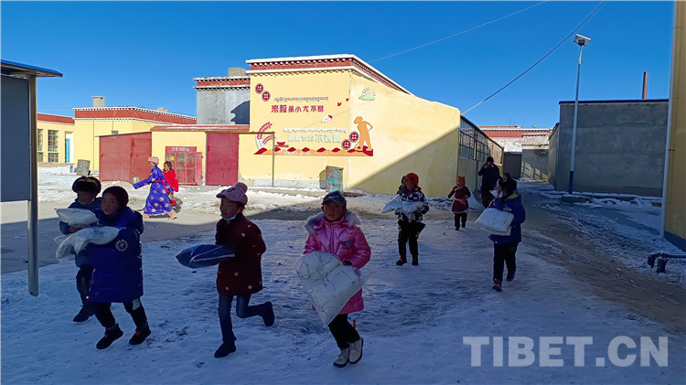 中國西藏網(wǎng)訊 “孩子們,排好隊,快到食堂去領羽絨服?!?央吉措姆老師高興地對一年級的學生說。待孩子們來到食堂,這里已是熱鬧一片,看到掛著“學史力行、愛聚藏鄉(xiāng)、童心向黨”愛心羽絨服發(fā)放儀式的橫幅,孩子們才恍然大悟,原來是援藏的叔叔給大家送新羽絨服來了。
