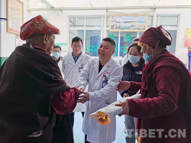 圖為患者貢嘎登達(dá)家屬為表示感謝為援藏醫(yī)生送上了錦旗