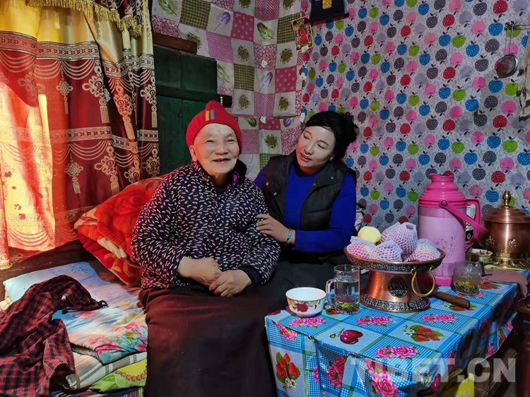 今年73歲的玉蘭老人,在崗?fù)写迳盍硕嗄?,她的父親是來(lái)自四川的漢族,母親是崗?fù)写宓牟刈?,從小就在藏漢結(jié)合家庭中成長(zhǎng)起來(lái)?,F(xiàn)在,在女兒沖旺姆的精心照料下,過(guò)著安詳幸福的晚年生活。江達(dá)縣崗?fù)墟?zhèn)黃格村村民玉蘭說(shuō):“大概二十多年前,我們搬到了崗?fù)写迳?,這么多年,鄉(xiāng)里、村里的領(lǐng)導(dǎo)對(duì)我們家很照顧,我感覺(jué)現(xiàn)在生活的很好,很滿意!”