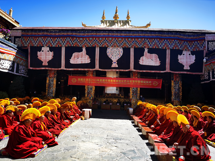 圖為西藏自治區(qū)2022年度藏傳佛教學經僧人考核晉升格西拉讓巴學位立宗答辯暨頒證儀式現(xiàn)場 攝影:王淑