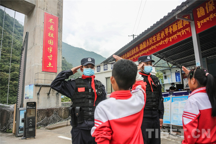圖為背崩邊境派出所民警帶領(lǐng)學(xué)生宣讀強(qiáng)邊誓詞