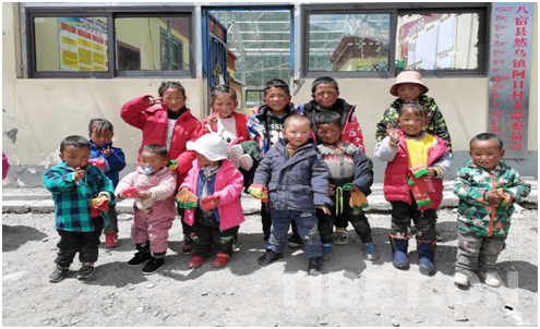 圖為兒童節(jié)當(dāng)天部分阿日村學(xué)齡前兒童收到了愛(ài)心人士的禮物