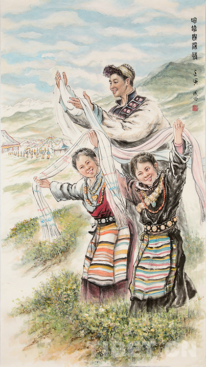 圖為張兆林國畫作品《哈達寄深情》 圖片由西藏文化博物館提供
