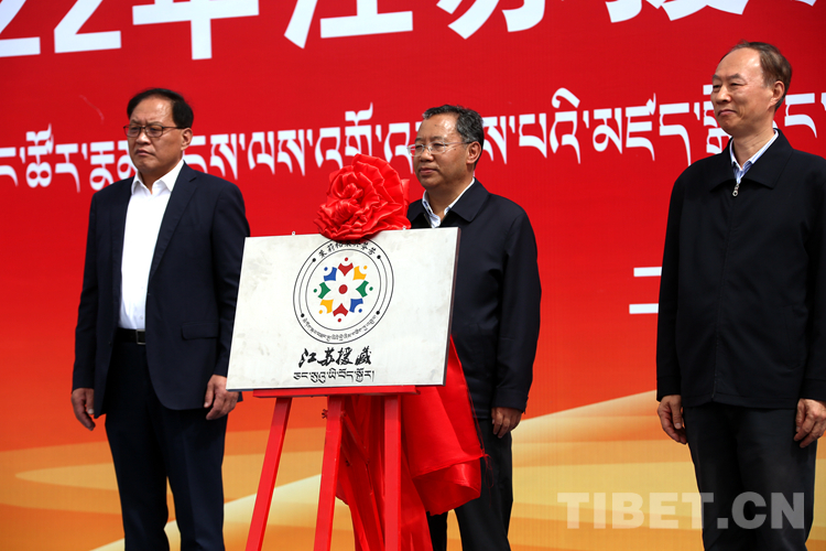 圖為現(xiàn)場發(fā)布江蘇援藏項目標(biāo)識 攝影:王佳豪