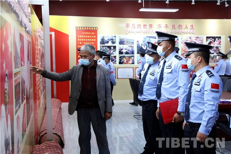 圖為民警參觀國(guó)旗阿媽黨性教育基地 攝影:尼瑪?shù)┰?/p>