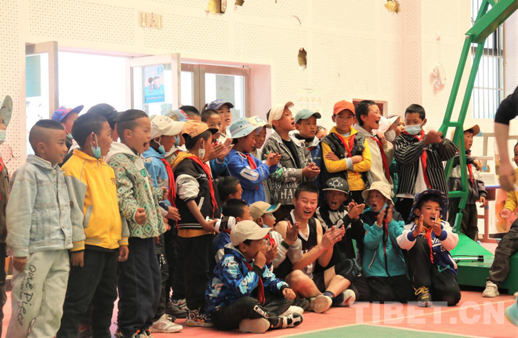 這次比賽在崗巴縣的一所學(xué)校的籃球館里舉行,比賽還沒(méi)有開始,孩子們就把館內(nèi)圍得“水泄不通”,大喊著:“劉科加油,劉科加油!”民警黃列平不情愿地和孩子們說(shuō):“怎么只對(duì)劉科喊加油啊,我們也要!”孩子們嘿嘿笑了兩聲,等到劉科休息換人的時(shí)候,呼喊聲改成了:“劉科隊(duì)加油!”