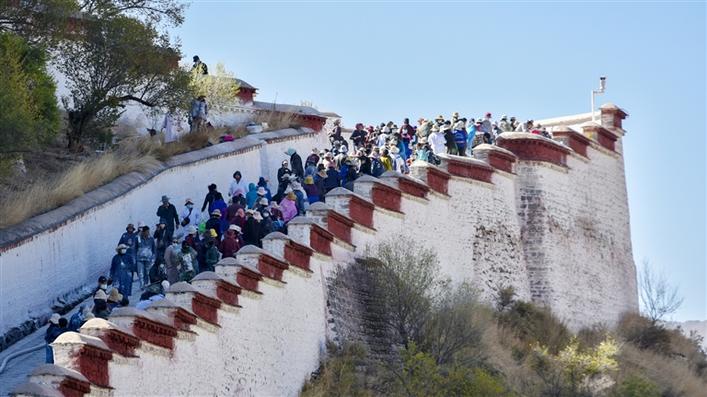 圖為布達(dá)拉宮一年一度的粉刷“美顏”時(shí)刻 圖片來源:西藏日報(bào)