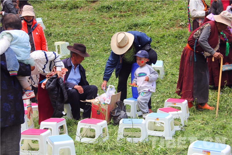 圖為2022年伊日鄉(xiāng)第二屆文化旅游藝術(shù)節(jié)上,在帳篷里休閑的群眾將食物殘渣放入垃圾袋 攝影:王茜