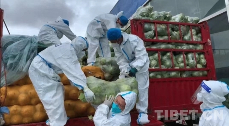妻子順利生產(chǎn)后,陳建軍懸著的心終于落下,安心投入到疫情防控工作中,為了打通日喀則市生活保障物資的“最后一公里”,日喀則邊境管理支隊派出應(yīng)急增援力量,身穿防護(hù)服,化身“搬運(yùn)工”,執(zhí)行生活物資的緊急搬運(yùn)任務(wù),陳建軍就在其中。