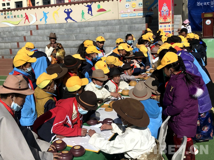 圖為2021年西藏自治區(qū)“體育項目進校園”活動暨拉薩市堆龍德慶區(qū)古榮鎮(zhèn)中心小學(xué)藏棋比賽活動現(xiàn)場 攝影:次旦拉姆
