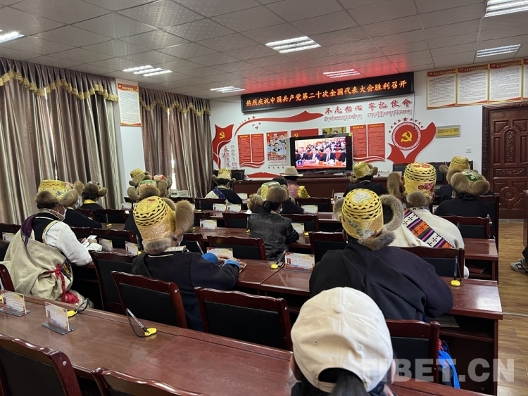 圖為西藏自治區(qū)山南市乃東區(qū)干部群眾收聽收看黨的二十大開幕會(huì) 圖片來源:藏源發(fā)布