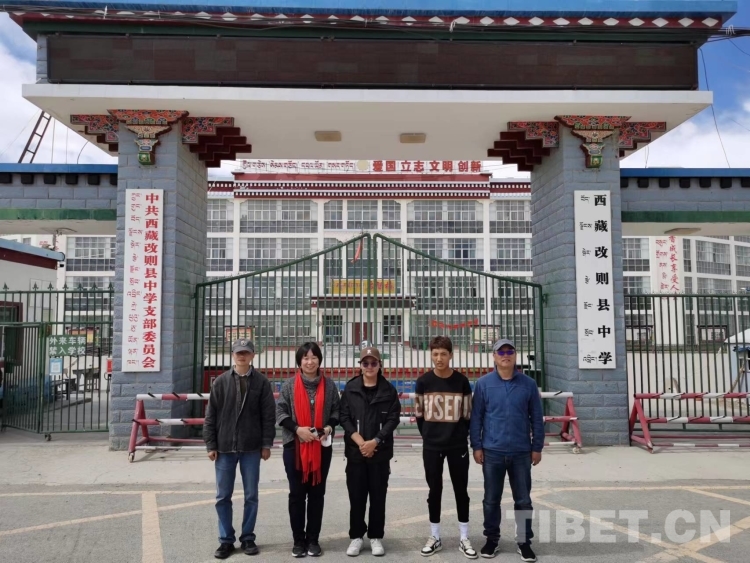 圖為在改則中學(xué)前合影(2022年7月拍攝)