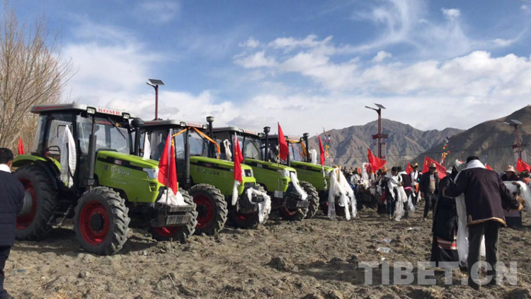 圖為西藏農(nóng)民開耕儀式上的機(jī)械化工具 攝影:拉加當(dāng)周