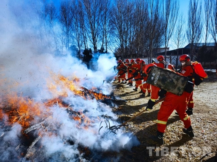 圖為滅火救援訓練 攝影:洛桑頓珠