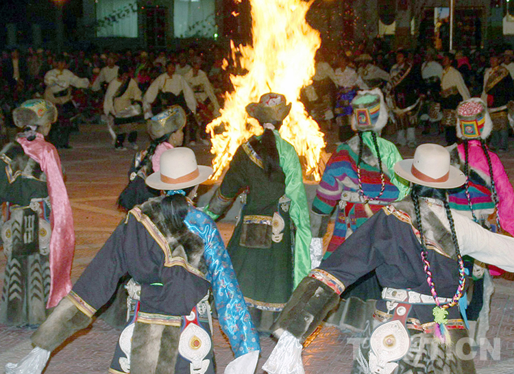 這是尼瑪縣群眾,在縣城圍著篝火跳起歡樂(lè)的“鍋莊”舞(唐召明2013年攝)
