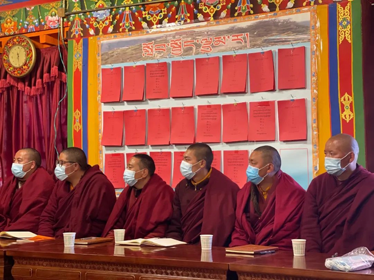 圖為卡久寺僧人認真聆聽宣講 圖片來源:洛扎縣政府官網(wǎng)
