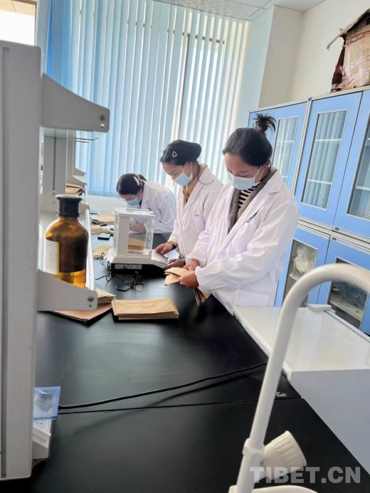 圖為西藏自治區(qū)農(nóng)牧科學(xué)院草業(yè)科學(xué)研究所科技人員在開展野生牧草種子生理試驗