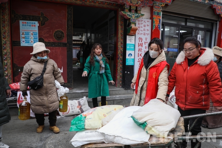 中國(guó)西藏網(wǎng)訊 近日,在西藏自治區(qū)拉薩市城關(guān)區(qū)八廓街道魯固社區(qū)居委會(huì)的院子里,不時(shí)傳來陣陣歡聲笑語(yǔ),在院子的正中間,一袋袋大米、面粉,一桶桶食用油碼放整齊。