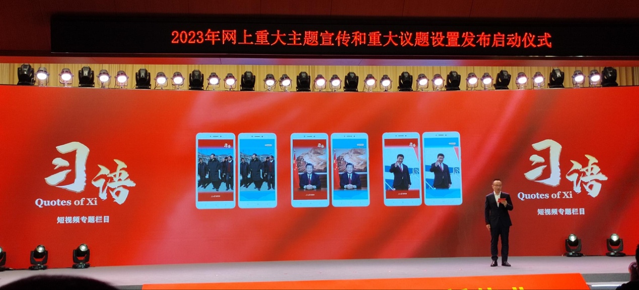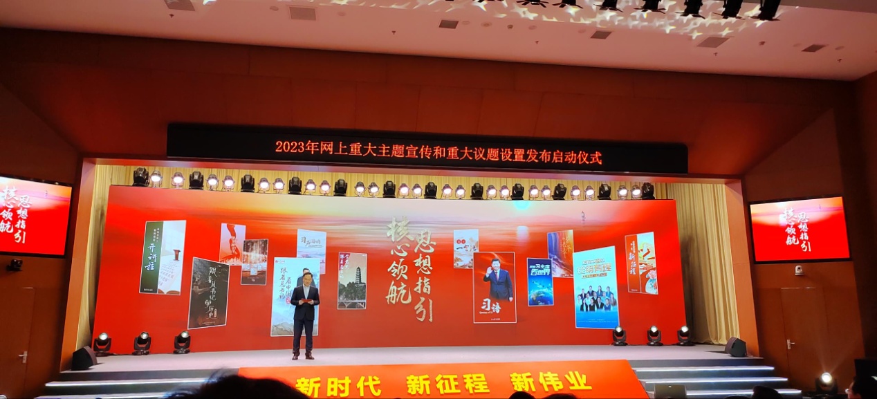 圖為“團(tuán)結(jié)奮進(jìn)新征程 奮楫揚(yáng)帆再出發(fā)”2023年網(wǎng)上重大主題宣傳和重大議題設(shè)置發(fā)布啟動(dòng)儀式主會(huì)場(chǎng)