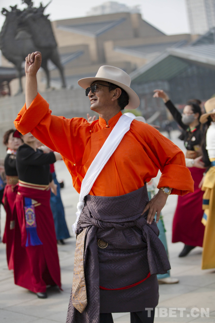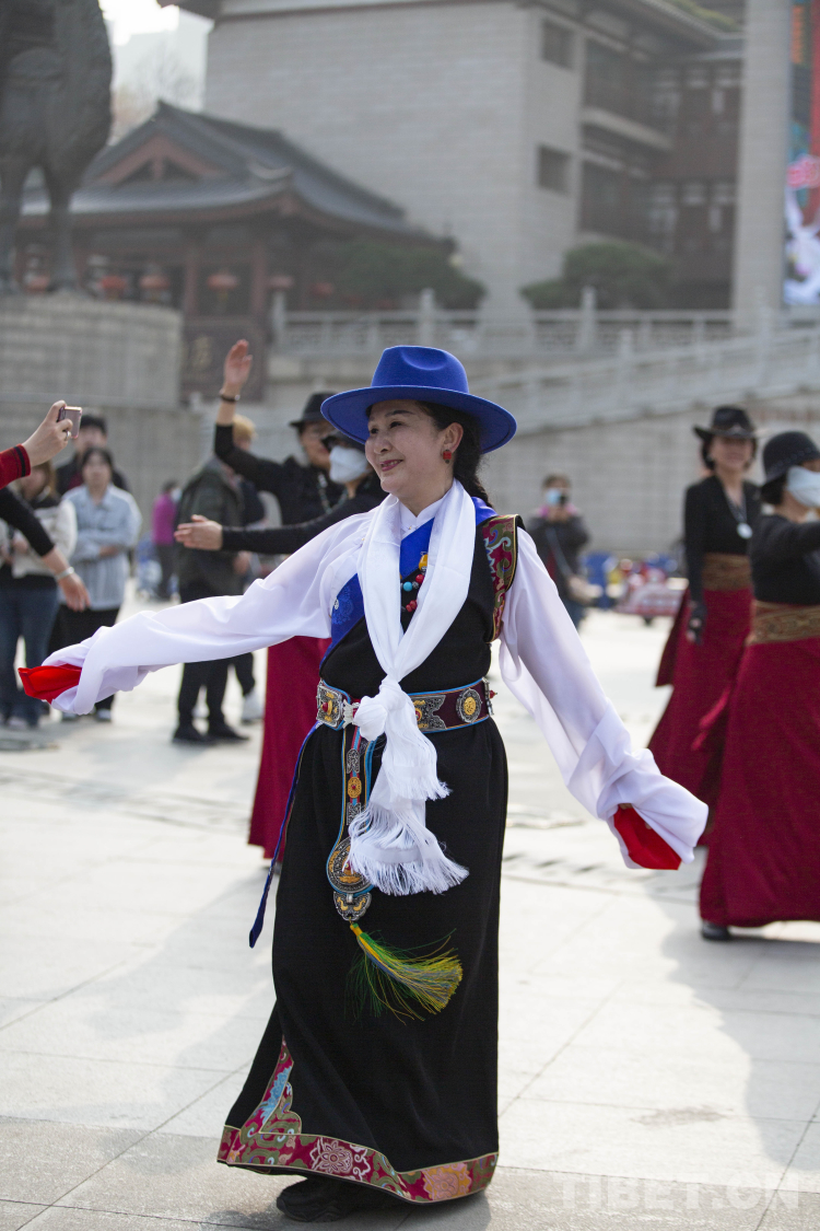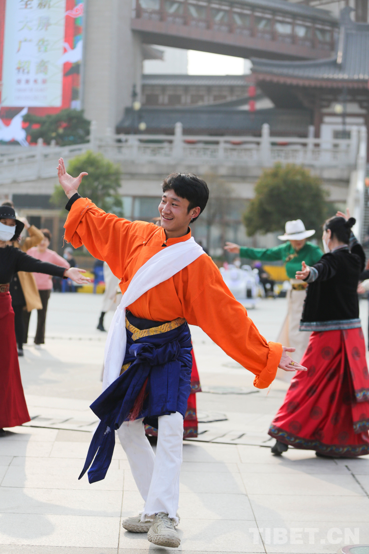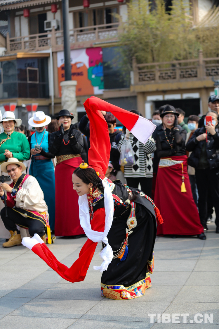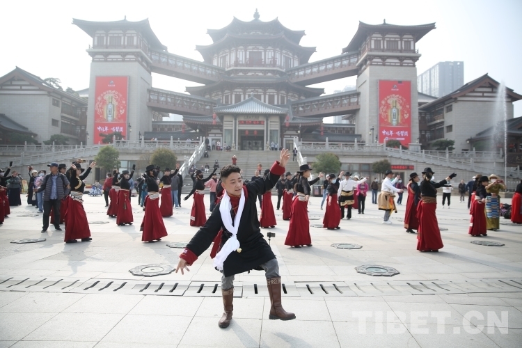 中國西藏網訊 3月21日,由新的社會階層人士服務團三分團主辦、北京藏地神韻非物質文化傳播發(fā)展公司承辦的傳統(tǒng)藏舞公益推廣活動在西安舉辦。多位藏舞傳承人與藏舞愛好者齊聚西安大唐西市進行公益推廣交流。鍋莊、伊舞,《歡迎你們到來》《舞動青春年華》《吉祥的哈達》……一曲接著一曲,舞出了藏族舞蹈的無限魅力!(中國西藏網 記者/呂靜 姚浩然)