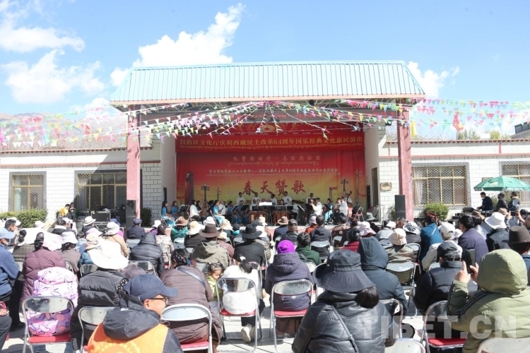 中國(guó)西藏網(wǎng)訊 近日,由西藏自治區(qū)文化廳主辦,西藏自治區(qū)歌舞團(tuán)、藏劇團(tuán)承辦的慶祝西藏民主改革64周年——國(guó)樂(lè)經(jīng)典文化惠民演出《春天贊歌》在拉薩拉開(kāi)序幕,并將于近期在拉薩、日喀則等地演出近20場(chǎng)。
