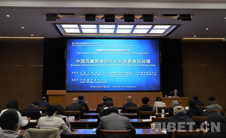 中國(guó)西藏網(wǎng)訊 3月28日,第七屆北京國(guó)際藏學(xué)研討會(huì)前期分會(huì)—西藏教育發(fā)展專題國(guó)際研討會(huì)在北京舉行。會(huì)議以“中國(guó)西藏教育現(xiàn)代化和受教育權(quán)保障”為主題,由中國(guó)人權(quán)研究會(huì)、中國(guó)西藏文化保護(hù)與發(fā)展協(xié)會(huì)、中國(guó)藏學(xué)研究中心共同主辦,中國(guó)藏學(xué)研究中心承辦。研討會(huì)由中國(guó)藏學(xué)研究中心總干事鄭堆主持,國(guó)內(nèi)外有關(guān)專家學(xué)者60余人以線上線下相結(jié)合的方式參會(huì)。中國(guó)人權(quán)研究會(huì)副秘書長(zhǎng)王琰文,中國(guó)西藏文化保護(hù)與發(fā)展協(xié)會(huì)副秘書長(zhǎng)林建,中國(guó)藏學(xué)研究中心副總干事廉湘民、李德成出席。