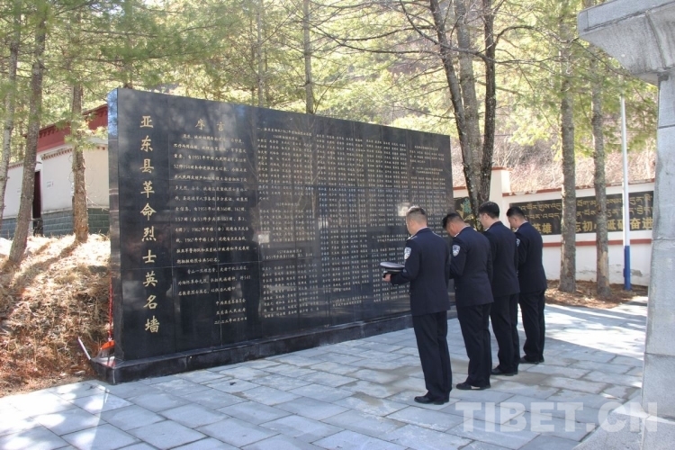 圖為西藏邊檢總站執(zhí)法調(diào)查支隊(duì)執(zhí)法調(diào)查七隊(duì)民警向亞東縣革命烈士英名墻默哀 攝影:李渠成