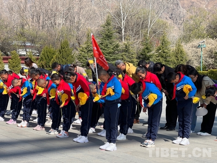 中國(guó)西藏網(wǎng)訊 4月12日上午,由西藏?zé)煵蓠v日喀則市昂仁縣第十一批駐村工作隊(duì)、江蘇商會(huì)黨委、冬日暖陽(yáng)愛心公益組織承辦的“領(lǐng)略非凡世界、放飛多彩夢(mèng)想”公益活動(dòng)工作組帶領(lǐng)來(lái)自西藏日喀則市昂仁縣多白鄉(xiāng)的30名小學(xué)生來(lái)到位于拉薩市西郊的拉薩烈士陵園緬懷革命先烈。