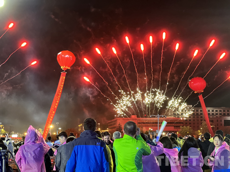 圖為煙花秀閃亮藏博會(huì)開幕式上空 攝影:德吉卓瑪