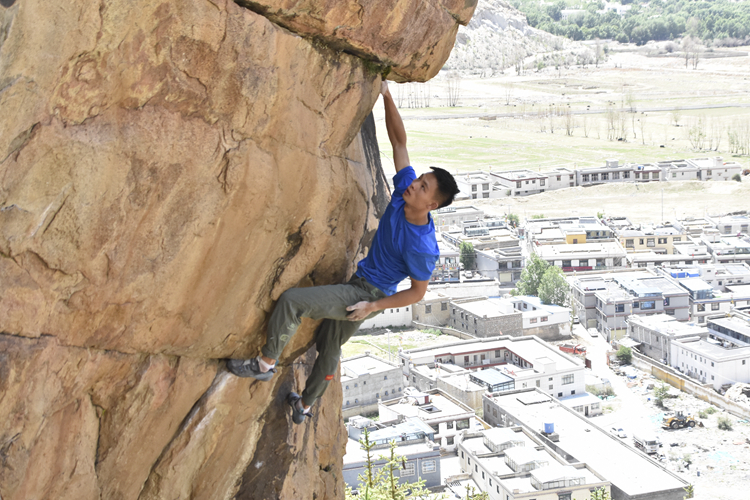 作為本次比賽的主辦地,拉薩市城關(guān)區(qū)奪底街道吉倉自然巖壁場地,具有得天獨厚的自然地理優(yōu)勢,是舉辦自然巖壁攀巖賽事的首選之地。運動員爬上陡峭的木乃伊峰,轉(zhuǎn)頭就可以俯瞰拉薩市區(qū)。