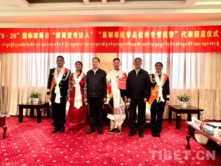 活動(dòng)當(dāng)天,西藏自治區(qū)相關(guān)領(lǐng)導(dǎo)在迎賓館為“西藏禁毒達(dá)人”和“易制毒化學(xué)品優(yōu)秀專管民警”代表頒發(fā)榮譽(yù)證書,隨后視察指導(dǎo)街面宣傳活動(dòng)。