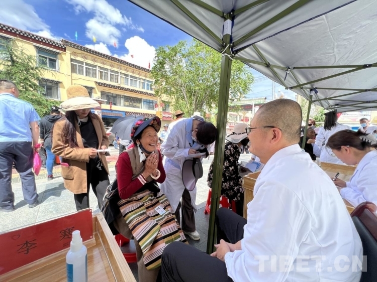 “從首都老遠跑來給我們看病送藥,嘎真切(感謝)、故次仁(愿您長壽)。”向巴曲宗在骨科義診點給來自北京海淀區(qū)花園路社區(qū)衛(wèi)生服務中心主任李寒看完膝蓋、胳膊、肩膀等關(guān)節(jié)病后一會兒雙手合十、一會兒舉起大拇指、一會兒又跟李醫(yī)生握手表達著心中的感謝之情。