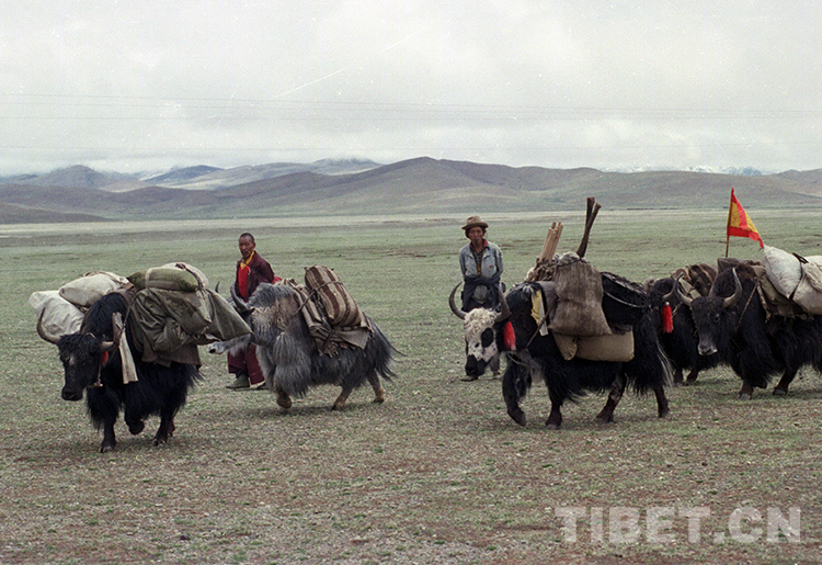 資料圖:藏北草原正在馱物運(yùn)輸?shù)年笈H海ㄌ普倜?997年攝)