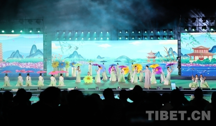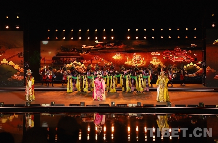 當晚開幕式文藝演出共分為序《雪頓新韻》、上篇《相約雪頓》、下篇《心約拉薩》和尾聲《百年雪頓》四部分,整場文藝演出融合歌曲、舞蹈、藏戲、京劇、昆曲、街舞等元素,并以半實景的舞臺藝術(shù)形式上演《百年雪頓》等節(jié)目,線上線下呈現(xiàn)了一臺傳統(tǒng)與現(xiàn)代交相輝映、傳承與創(chuàng)新和諧相融、歷史與未來一脈相承的文藝盛宴。