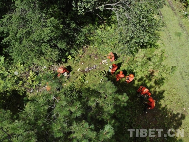 中國(guó)西藏網(wǎng)訊 群山環(huán)抱,山清水秀,湍急的南伊曲水在谷間轟然鳴響,許多橙色身影活躍在山林,搜索著一個(gè)個(gè)被遺棄的餐巾紙、塑料瓶、塑料袋等白色垃圾。