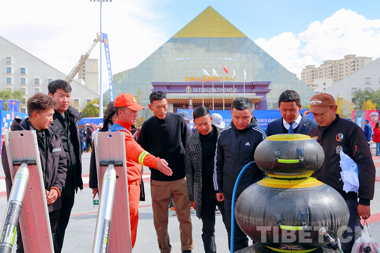 圖為啟動(dòng)儀式現(xiàn)場拉薩消防指戰(zhàn)員向市民介紹高精尖裝備器材