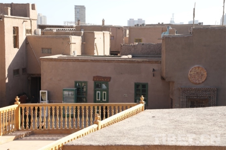中國西藏網(wǎng)訊 在中國新疆維吾爾自治區(qū)喀什市,在繁榮熱鬧的喀什古城對(duì)面,僅一條馬路之隔,坐落著代表喀什傳統(tǒng)建筑靈魂的高臺(tái)民居。高臺(tái)民居又名闊孜其亞貝希老城區(qū),它位于吐曼河西岸一處高約30米、長(zhǎng)寬約400米的黃土高臺(tái)上,其面積約57000平方米。“闊孜其亞貝?!庇懈哐峦撂盏囊馑?,因而高臺(tái)民居又被稱為高崖上的土陶人家。