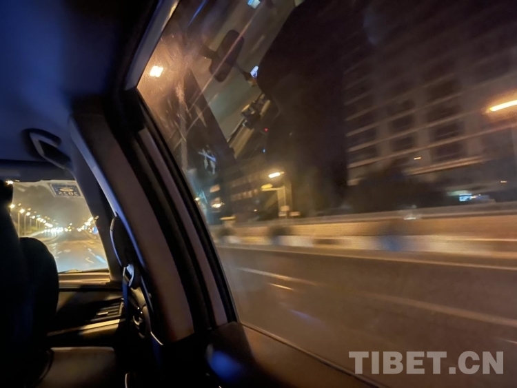 圖為凌晨三點(diǎn)趕往首都機(jī)場的車上 攝影:王妍丹