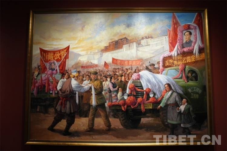 圖為順利會師紀念油畫,畫中為慶祝川藏、青藏公路全面通車的歡慶場景 攝影:陳浩力