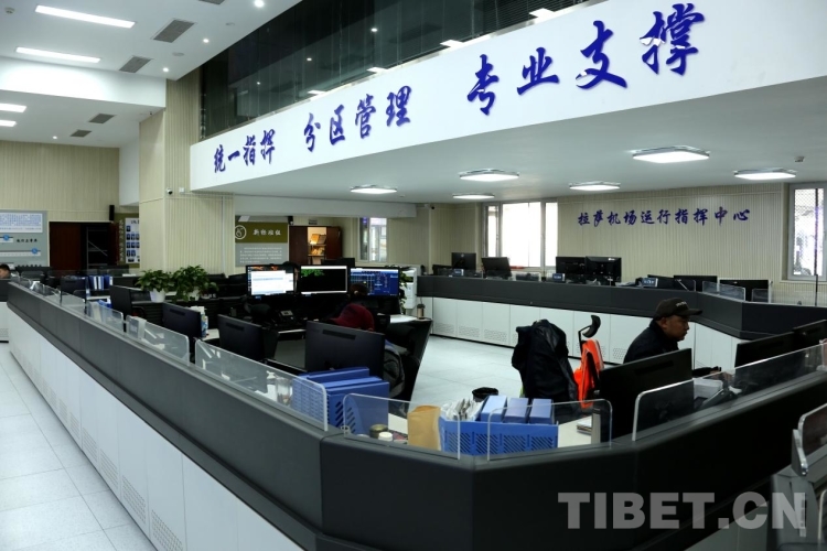 圖為春運(yùn)首日,拉薩機(jī)場運(yùn)行指揮中心內(nèi)工作人員有序指揮各項(xiàng)工作 攝影:王佳豪