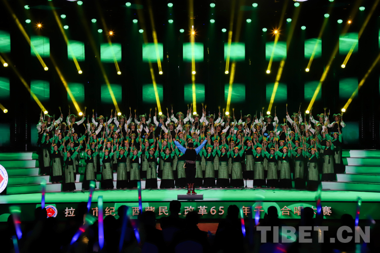 中國西藏網(wǎng)訊 3月27日晚,《盛世中國 幸福西藏》拉薩市紀(jì)念西藏民主改革65周年千人合唱大賽在拉薩師范高等??茖W(xué)校體育館舉行。