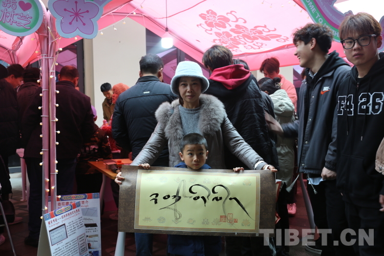 圖為游客收到林芝市職業(yè)技術學校學生的書法作品。攝影:旦曲