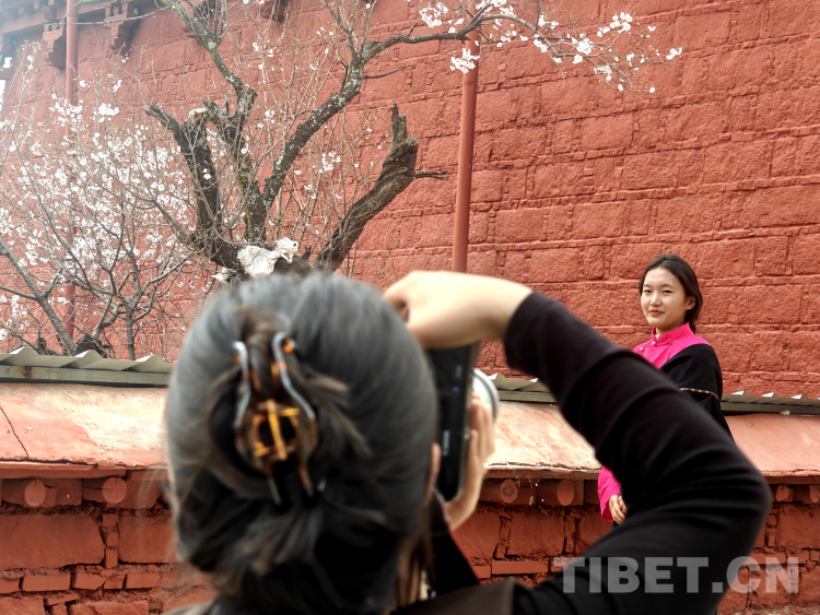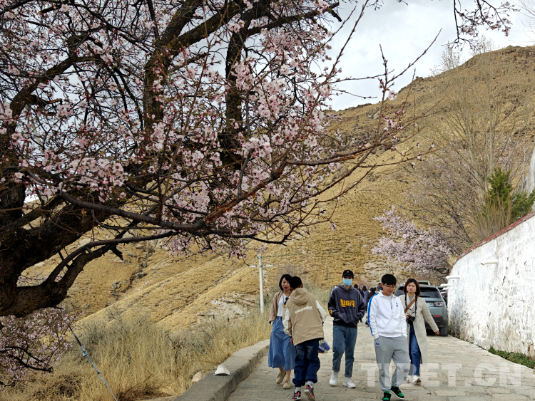 中國西藏網(wǎng)訊 每年4月,位于西藏拉薩主城區(qū)北郊山坡上的古剎帕邦喀(也稱帕崩崗),環(huán)繞寺院周圍的桃花盛開,引來了諸多當?shù)厥忻窕蛴慰图娂娗巴p花、拍照。