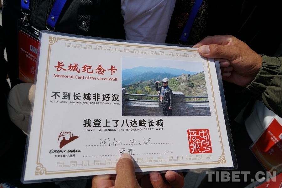 圖為考察學習團成員展示的“長城紀念卡” 攝影:周晴晴