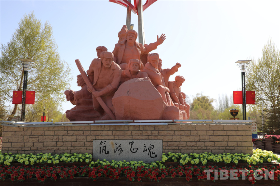 將軍樓公園因格爾木奠基人——慕生忠將軍而得名。公園門內(nèi)不遠(yuǎn)處即是反映當(dāng)年筑路大軍艱苦開路的群雕“筑路忠魂”。遙想當(dāng)年,筑路大軍用鎬、鍬、錘等簡(jiǎn)單的工具,爬冰臥雪,僅用時(shí)7個(gè)月零4天,打通全長(zhǎng)1283公里的青藏公路格爾木至拉薩段,創(chuàng)造了人類筑路史上的奇跡。