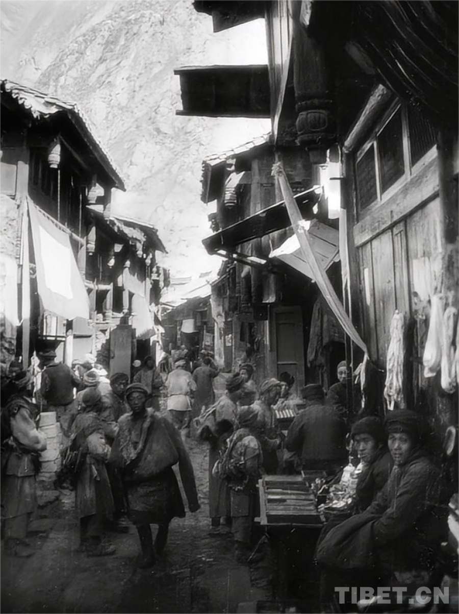 百姓生活中的文化交融,可從當?shù)厝藦氖碌穆殬I(yè)和社交活動體現(xiàn)出來。1890年,有外國人記敘說,“不同種族的人混雜在一起,很奇特,把街道擠得滿滿的”。他又寫道:城里漢人一般經(jīng)商和開店,藏人大多被商隊雇傭。他住宿的鍋莊的女主人是藏人?!板伹f都是女人當家,為什么她們能當家?她們能說會道,既懂漢語又懂藏語,她就有這個本事。在她的家里,招待漢族的方式是一套,比如你吃印度的紙煙,過去漢族地方的黃煙,水煙袋,她就請你吃這個,你是漢族的,然后這個泡茶。按照漢族人的方式。但藏族的商人去了以后怎么辦呢,那就是—鼻煙,酥油茶、牛肉,她這個禮節(jié)都體現(xiàn)了文化交流?!彼阱伹f還見到藏漢婦女的一次聚會:“旅店里有一場女性宴會,我從未見過這種場面。大約20個漢藏女子,均著最好的服飾到來。漢族女子身穿絲綢,頭發(fā)抹油,雙頰撲粉;藏族女子身穿深色毛織外衣和褲子,高靴至膝。他們渾身戴著金銀珠寶,聚會約在下午2點開始,他們玩到6點才散去”。