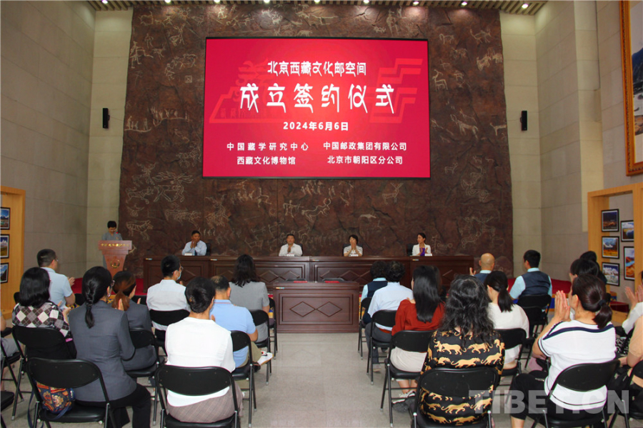 中國(guó)西藏網(wǎng)訊 6月6日,中國(guó)藏學(xué)研究中心西藏文化博物館與中國(guó)郵政集團(tuán)有限公司北京市朝陽(yáng)區(qū)分公司聯(lián)合建立“北京西藏文化郵空間”合作簽約儀式在西藏文化博物館(下文簡(jiǎn)稱“博物館”)舉行。中國(guó)藏學(xué)研究中心(下文簡(jiǎn)稱“藏研中心”)副總干事李德成、中國(guó)郵政集團(tuán)有限公司北京市朝陽(yáng)區(qū)分公司總經(jīng)理梁洪濤、藏研中心相關(guān)部門負(fù)責(zé)人出席活動(dòng)。