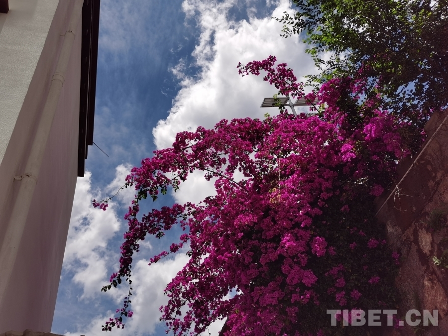 圖為瓦卡鎮(zhèn)路邊盛開(kāi)的三角梅 攝影:鄒慧